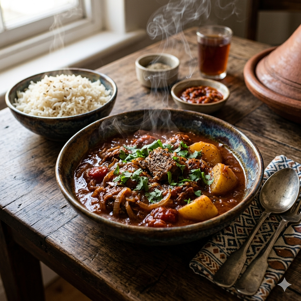 This rich, aromatic stew celebrates Cape Malay flavours, with slow-cooked meat, caramelised tomatoes, and a balance of sweetness, spice, and warmth. Comforting and vibrant, it’s a classic loved across South Africa.